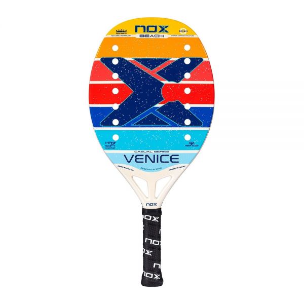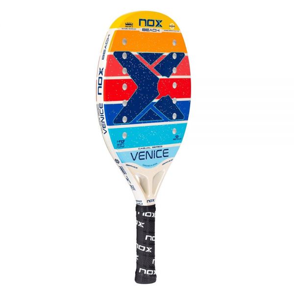 Esta pala Beach Tenis Nox Venice de la serie casual de Nox está diseñada para los jugadores ocasionales o de iniciación que disfrutan pasar un rato divertido y buscan conseguir un mejor rendimiento en el juego.