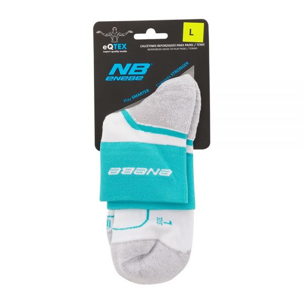 Estos calcetines Enebe Grip Down blanco y azul se encuentran diseñados para practicar pádel o deportes de alto rendimiento a nivel profesional.