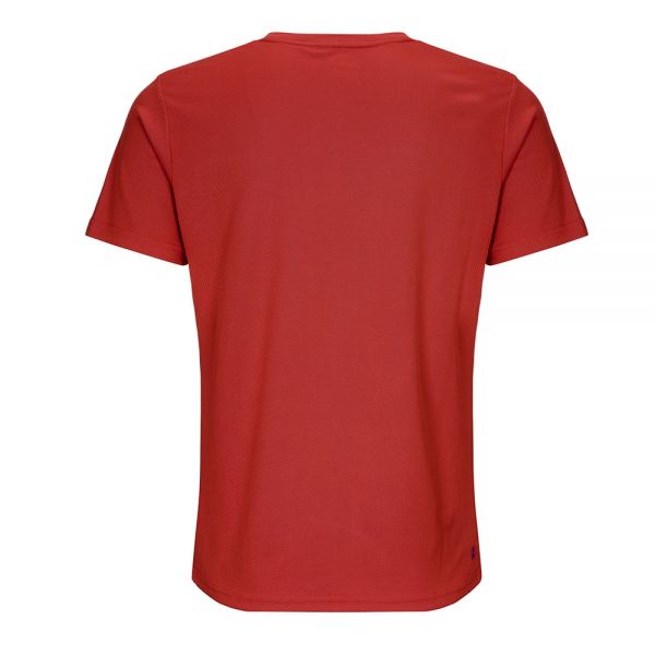 La camiseta BIDI BADU Ted Tech en color rojo, presenta un corte moderno en cuello V que se adapta perfectamente al cuerpo, conservando una gran ligereza y suavidad en la piel para realizar movimientos libres.