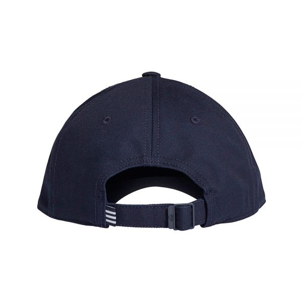 La gorra ADIDAS 3 franjas sarga en color azul y blanco, presenta tejido de sarga 100% algodón, que ofrece un tacto suave y gran confort durante tus entrenamientos o para tus actividades diarias.