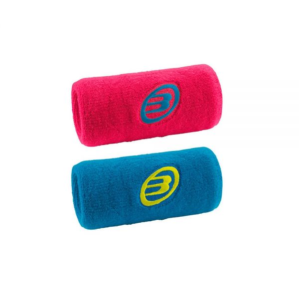 Las muñequeras Bullpadel BPMU-194 en color fucsia y turquesa ofrecen un diseño visto con tejido altamente absorbente y suave al tacto, perfectas para mantenerte fresco y seco por más tiempo durante el partido de pádel.