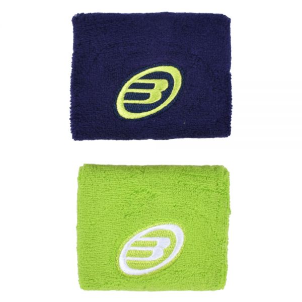 Las muñequeras Bullpadel BPMU-195 en color verde y azul marino para mujer son perfectas para llevar a la pista, ya que han sido diseñadas para absorber de manera rápida y efectiva la humedad.