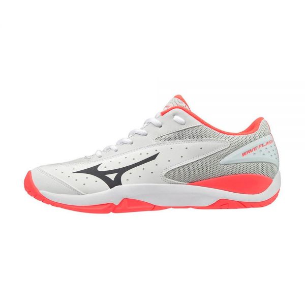 Mizuno Wave Flash CC Blanco Coral Mujer - Si eres una jugadora de pádel que necesita unas zapatillas con las que pueda jugar con velocidad, este modelo es para ti. Estas zapatillas son muy cómodas, igualmente son flexibles. Están creadas con una suela resistente. Con estas zapatillas, tendrás estabilidad al igual que amortiguación.