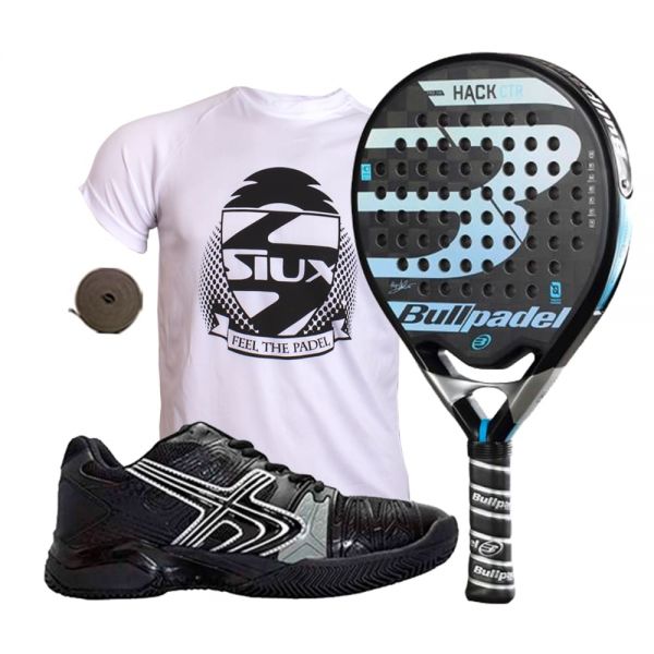 PACK BULLPADEL HACK CONTROL Y ZAPATILLAS SOFTEE 1.0 NEGRAS