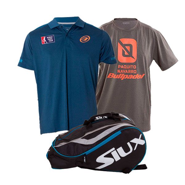 PACK PALETERO SIUX MASTERCOMBI AZUL, POLO CENERE Y CAMISETA BULLPADEL PAQUITO NAVARRO