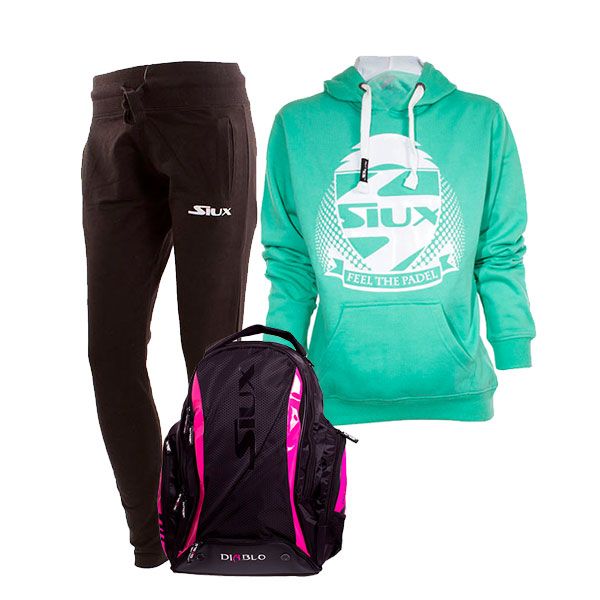 PACK SIUX MOCHILA PANTALON NEGRO Y SUDADERA BELICE MUJER TURQUESA