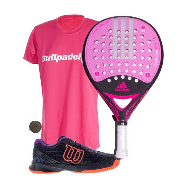 PACK ADIDAS REAL POWER CTRL 1.8 MUJER, ZAPATILLAS WILSON ASTRAL Y CAMISETA BULLPADEL