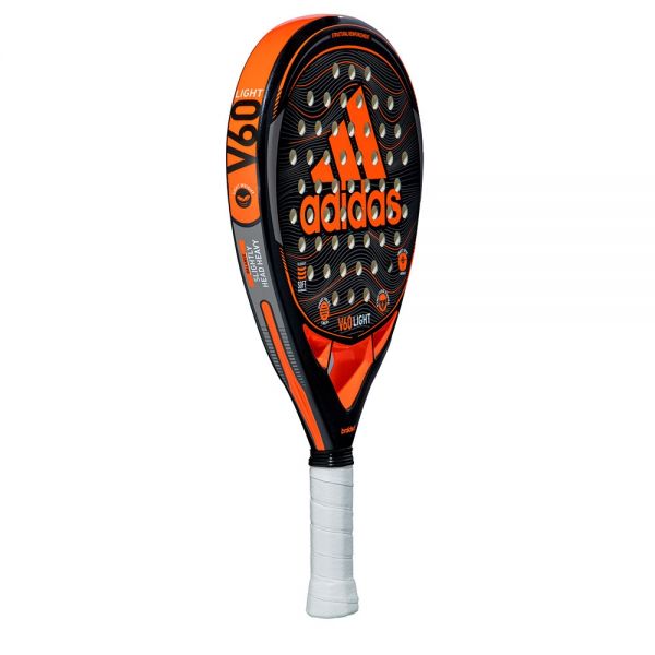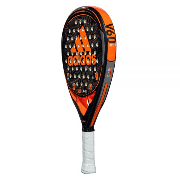 La nueva adidas V60 Light es una pala farbricada con materiales de alta calidad que otorgan resistencia y durabilidad. La V60 Light se caracteriza por su fácil adaptación a cualquier tipo de juego. Su forma "allaround" o híbrida lo hace posible. Además, cuenta con un diseño muy llamativo.