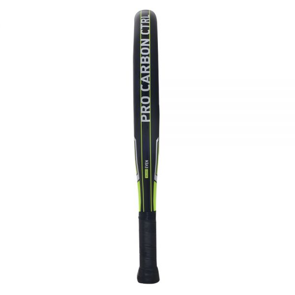 Pro Carbon CTRL 1.9 está fabricada en su totalidad con carbono, tanto en el marco como en los planos. Ese es uno de los materiales más resistentes del mercado. Su formato redondo amplía el punto ducle para golpear con más control. Su goma EVA Soft ofrece una pegada excelente con una salida de bola llena de control. Cuenta con dos principales tecnologías, Structural Reinforcent que mejora la fuerza de la estructura, y Smart Holes que aumenta la durabilidad de los planos y mejora los golpes con efecto.