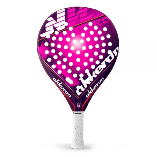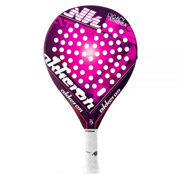 Akkeron Athenea Legacy R X9, si eres una jugadora de pádel de nivel avanzado, que necesita una pala muy cómoda y de gran calidad, este modelo es perfecto. Es una pala polivalente, creada con barniz lija, para que consigas mejores efectos. Con esta pala llamarás la atención en la pista, debido a su gran diseño en color morado.