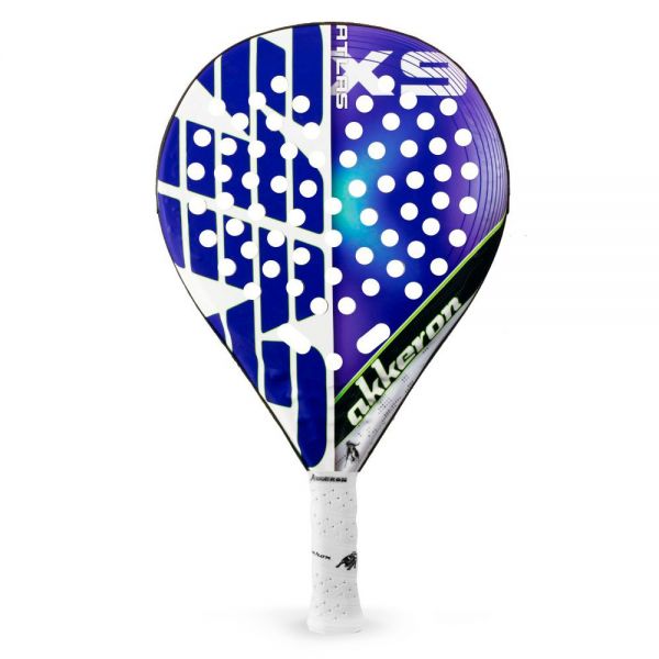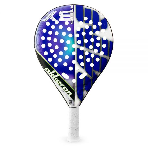 Akkeron Atlas R X9, es una pala creada pala que los jugadores de pádel consigan un gran rendimiento en la pista, es una pala muy confortable, tiene un amplio punto dulce y un diseño de taladrado en el corazón, que mejora la aerodinámica en el modelo. Tiene un diseño en acabado mate, en color azul, negro y blanco.