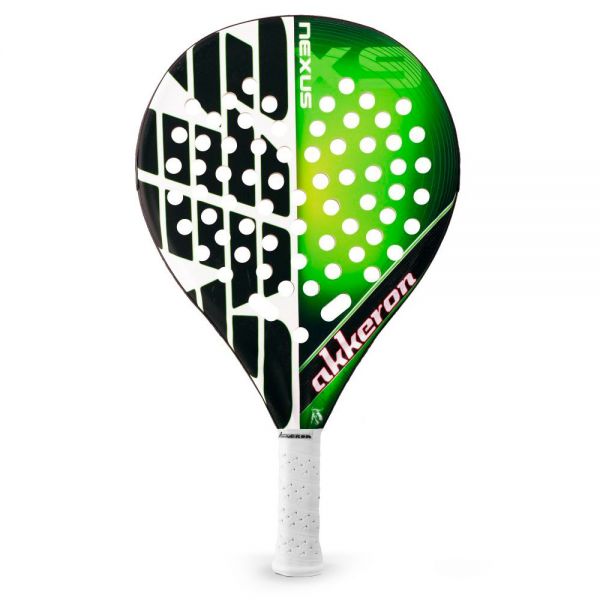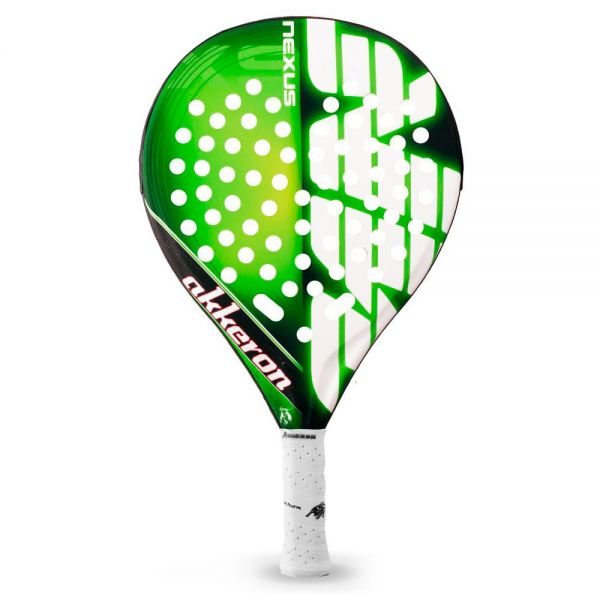 La pala Akkeron Nexus R X9 en color verde ofreceforma redonda, rápida adaptabilidad, para jugadores de nivel intermedio, con balance bajo para golpes más controlados y fabricada con estructura de fibra de vidrio y carbono altamente resistente.