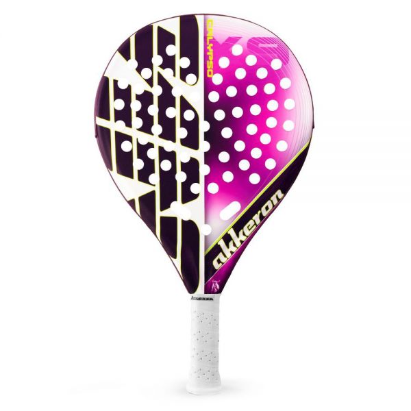 La pala Akkeron Calypso R X9 en color rosa ofrece forma redonda de cómodo manejo, tecnología Legacy que favorece el rendimiento en la pista y balance bajo para golpes con mayor precisión y control en cada salida.
