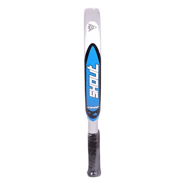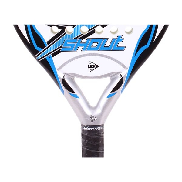 La Dunlop Shout tiene forma de lágrima y 38 milímetros de perfil. En su fabricación se han utilizado materiales de gran calidad como la fibra de vidrio y la fibra de carbono para marco y caras, mientras que para el núcleo se ha utilizado la goma EVA Superflex. Cuenta con un amplio punto dulce que permite un mayor control del juego por lo que también es recomendable para jugadores de nivel intermedio que quieran seguir avanzando en su juego.