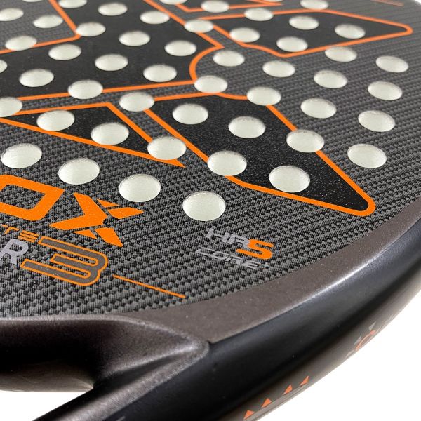 Entrena con las altas prestaciones de la pala Nox Ultimate power 3 en color naranja destinada a los jugadores profesionales de padel que buscan una pala de potencia.