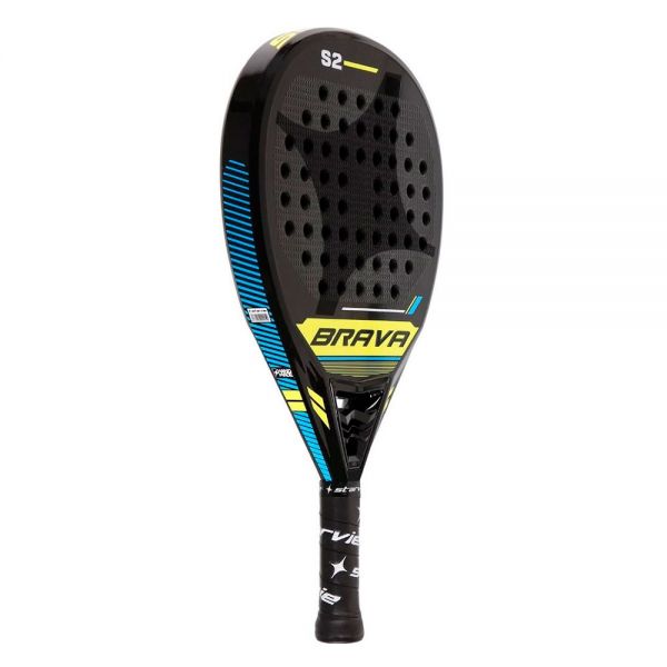 La pala Starvie Brava Black Edition incorpora la tecnología S2 para reforzar la pala ante los golpes y desgastes en el plano, además de la pieza Brava Core en el corazón que permite mayor manejabilidad y mejor reparto de peso.