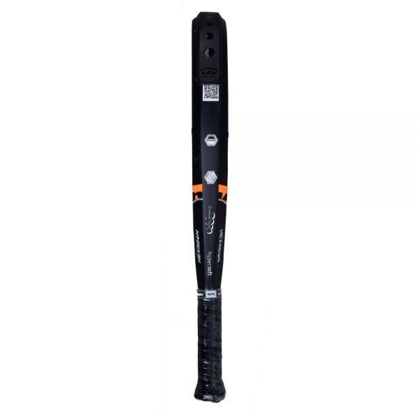 Creada con un formato de diamante y un balance alto para imprimir la máxima potencia de disparo. Su marco está compuesto por un tubular bidireccional de carbono altamente resistente que además le otorga más potencia a los golpes. Los planos cuentan con una fibra de carbono que cubre la goma EVA Hypersoft interioir. Esta goma ofrece un gran tacto y una salida de bola fenomenal.