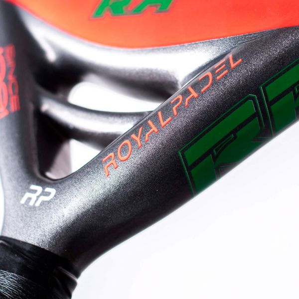 Esta pala de royal pádel está diseñado con un peso oscila entre los 360 y 370 gramos. Con forma de lágrima oversize y perfil de 38 mm