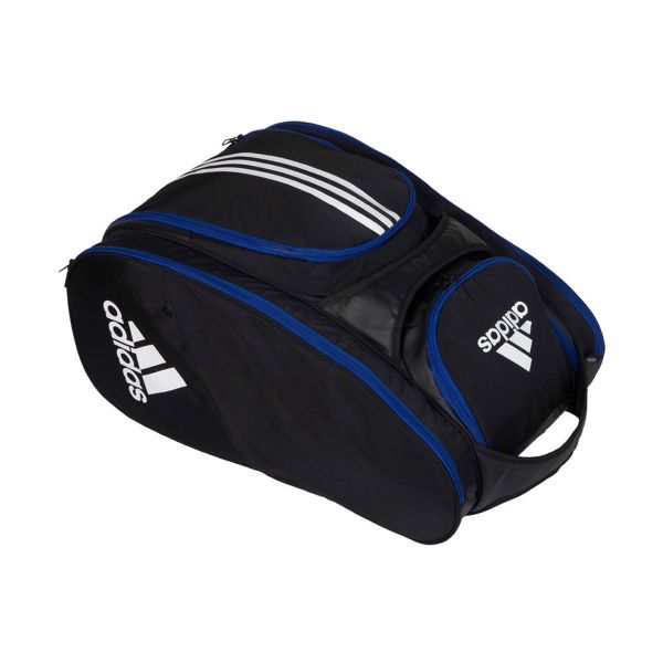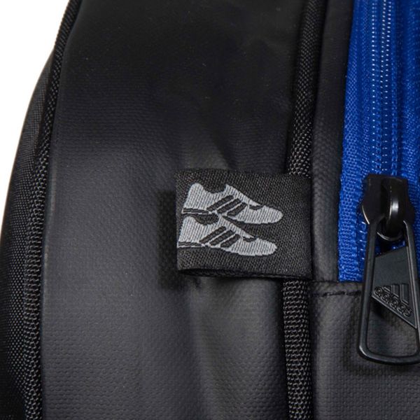 Paletero ADIDAS Multigame negro azul, gran capacidad y calidad, confeccionado en poliester 100%, con exteriores térmicos para proteger tus pertenencias, compartimiento para calzado, para ropa y hasta para 10 palas.