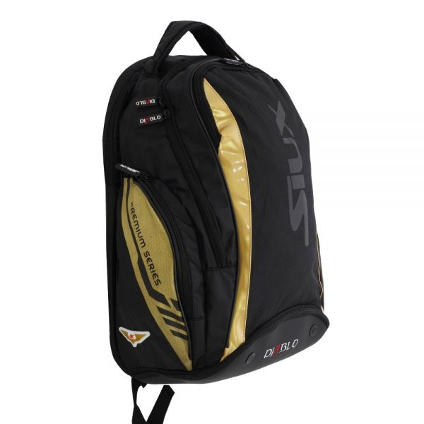 Experimenta el mejor confort al trasladar tus palas a la pista con la nueva mochila Siux Diablo gold que incorpora compartimento principal para almacenar 2 palas y bolsillos de amplio espacio para objetos personales.