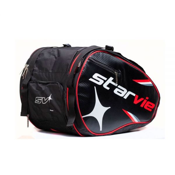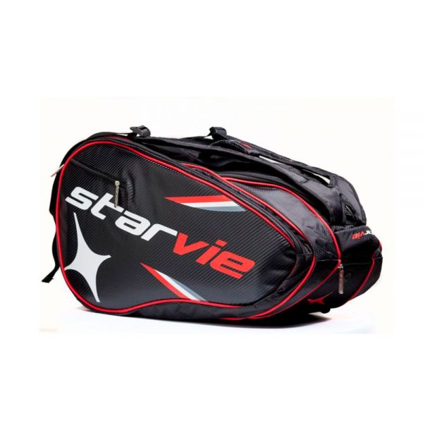 El paletero Star Vie Evo Pro negro rojo ha sido diseñado con materiales acolchados y resistentes que mantienen el equipamiento protegido, además de añadir refuerzo lumbar para evitar dolores a causa del peso. Cuenta con capacidad para 2 palas y con compartimento especial para zapatillas.