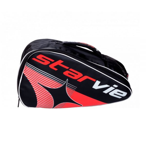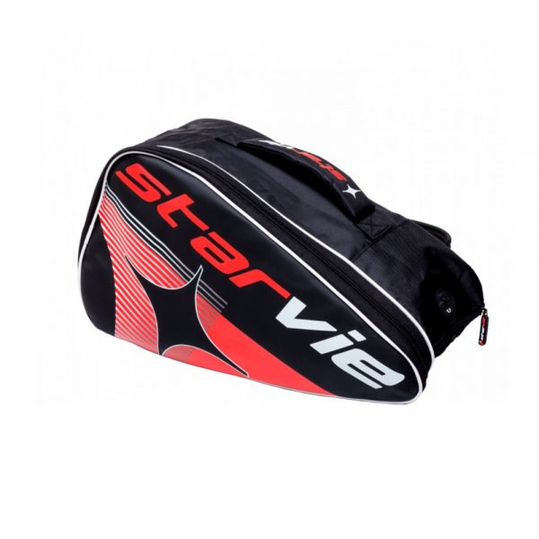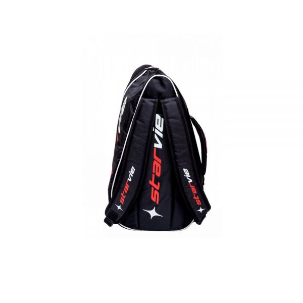 Traslada tu equipamiento a la pista de padel con este paletero StarVie Classic en color negro con rojo, diseñada con compartimentos de amplio espacio, y bolsillo especial para tus accesorios.