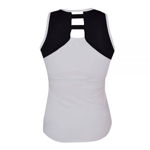 La camiseta Black Crown Durres para mujer está diseñada para brindar máxima comodidad y libertad de movimiento durante los partidos de pádel, ya que cuenta con diseño con tirantes cruzados en la parte posterior y tejido transpirable y ligero.