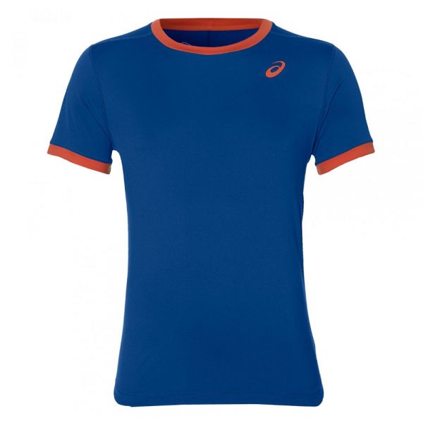 CAMISETA ASICS CLUB AZUL NARANJA, COSTURAS PLANAS