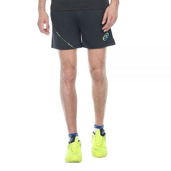 Pantalón Corto Bullpadel Ronin Negro - De alta calidad y muy cómodo, este pantalón corto llega a atorgar libertad de movimiento a los jugadores de pádel. Es una prenda que tiene un diseño que se puede combinar con mucha facilidad. Tiene una tela que seca con mucha rapidez.