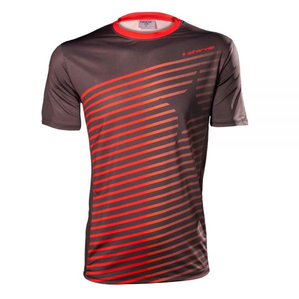 Salta a la pista con tu equipamiento completo con camiseta StarVie Star Stream en color negro con rojo, que destaca por su diseño elegante y moderno.