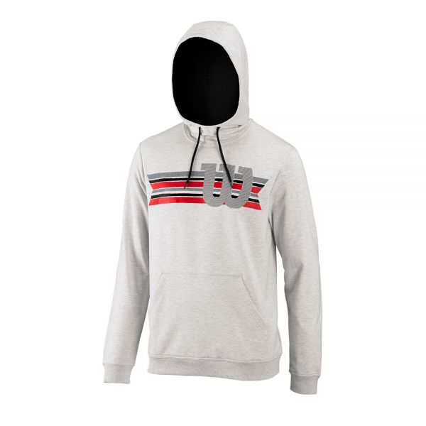 La Sudadera Wilson Stripe W PO Hoody WH Gris, es una bonita sudadera para hombre que te permitirá entrenar con mucha comodidad, ya que se encuentra elaborada con tejidos suaves. Incluye una capucha para mayor protección en épocas de frío. Cuenta con un estampado de rayas rojas y negras al frente de la sudadera, un detalle que agrega color a la tela gris de la sudadera.