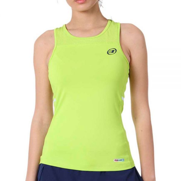 La camiseta Bullpadel Eduma en color verde presenta un diseño bastante cómodo con una confección ligera sin mangas, presentando un tejido de rejilla elástica que aporta mayor transpirabilidad, para conservar un máximo confort dentro de la pista.