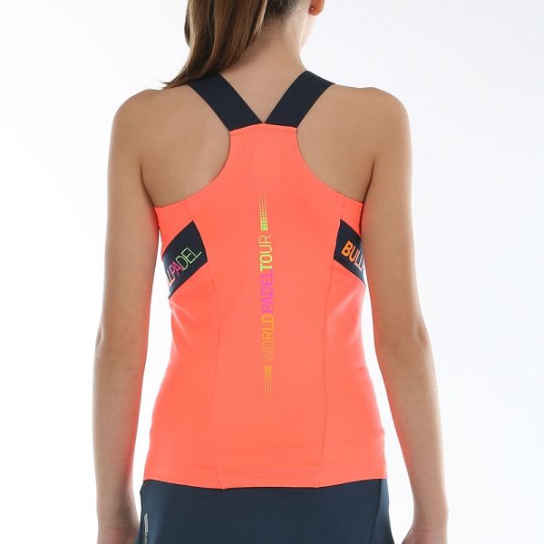 Destaca con las mejores prestaciones y acapara con las miradas en los partidos de padel con esta camiseta Bullpadel Serenis 431 en color coral para mujer. Confeccionado con tecnologías de calidad que favorece el secado rápido durante los partidos intensos.