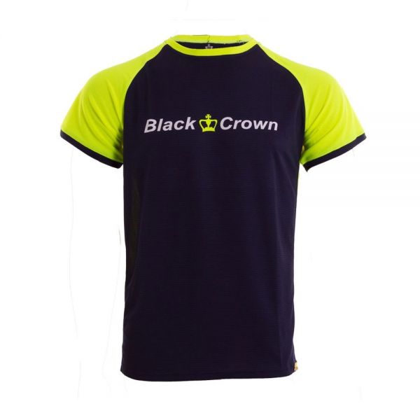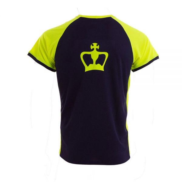 Camiseta deportiva Black Crown Jaipur de manga corta y cuello rendondo. Diseño moderno que combina el azul marino y amarillo fluor y de calidad. Fabricada con tejidos resistentes, ligeros y transpirables que permiten un secado rápido y mayor libertad de movimientos durante el juego.