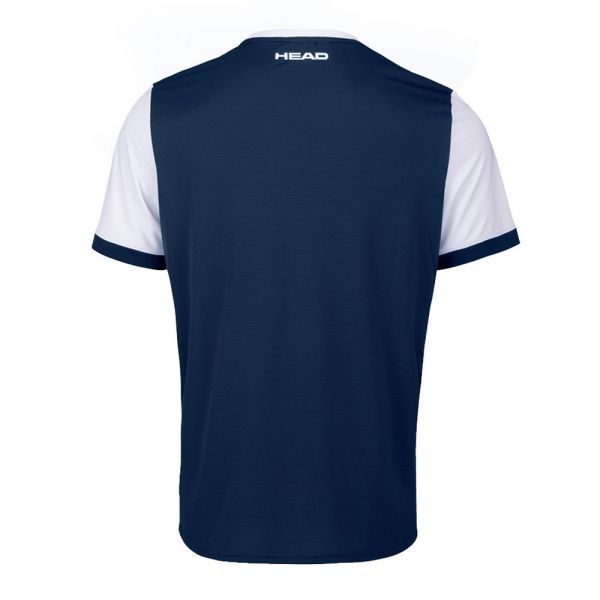 Camiseta Head Davies azul navy y blanco, ideal para los jugadores de pádel que buscan una prenda cómoda y ligera que proporciona sensaciones optimas de transpirabilidad.
