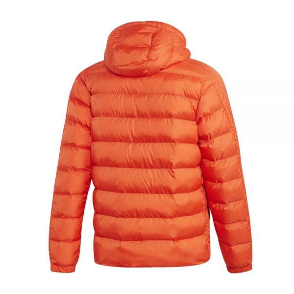 Luce dentro y fuera de la pista de pádel esta cómoda y atractiva chaqueta adidas itavic 2.0 3 bandas para hombre en color naranja; una prenda que combina el aislamiento térmico y un estilo urbano.