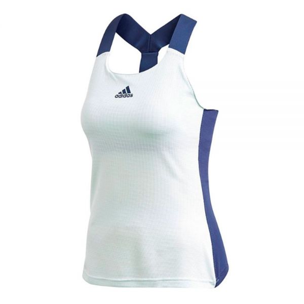 Experimenta mejores sensaciones durante los partidos de pádel portando este Tank Top ADIDAS Gameset Heat.RDY para mujer en color blanco y azul, un diseño hecho con tejidos ligeros y transpirables que garantizan un excelente confort y mayor transpirabilidad.