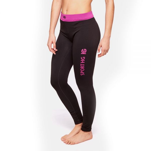 El pantalón HG Holstein en color negro y fucsia es una excelente opción para salir a correr, por su confección con tejido técnico que mejora el rendimiento de los músculos por su tratamiento con Tech-Carbon, además de ser de secado rápido, ayudando a mantener la piel fresca por más tiempo.