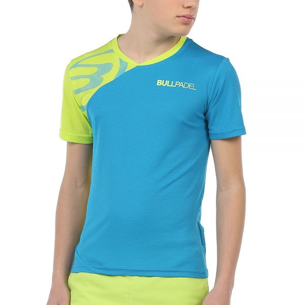 CAMISETA BULLPADEL CHAMOIS AZUL LIMA NIÑO, MUY CÓMODA