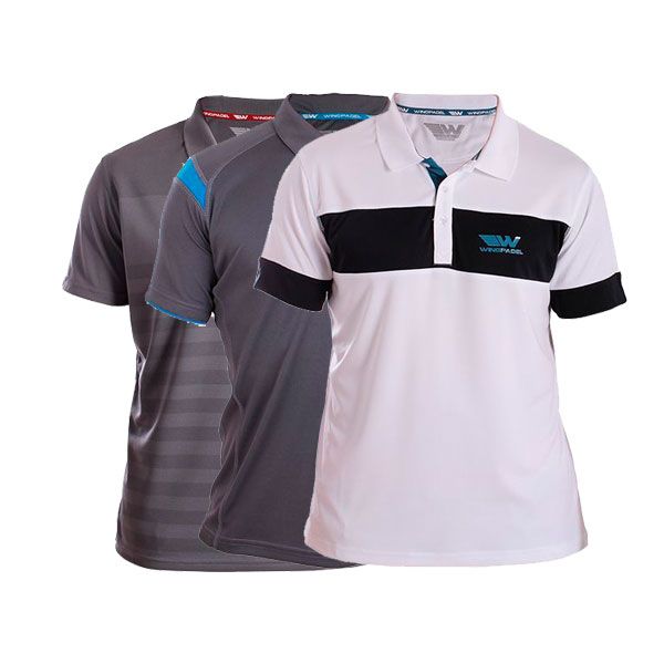 PACK 3 POLOS WINGPADEL, POLO MIPER GRIS Y AZUL, POLO W-LOT GRIS Y POLO W-THEO BLANCO NEGRO