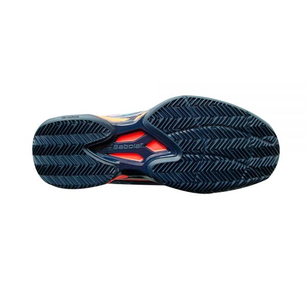 Estas zapatillas de padel Babolat Jet Team Padel en color marino y naranja, cuentan con una suela intermedia de alta calidad, que incorpora la tecnología Kompressor, que aporta una excelente amortiguación, que permite mayor sujeción y comodidad a la planta del pie, con la tecnología Active Flexion, que otorga mayor sujeción y te permite sentirte más conectado a la pista, logrando mayor rapidez y velocidad en cada movimiento, con una máxima tracción gracias a la suela Michelin.