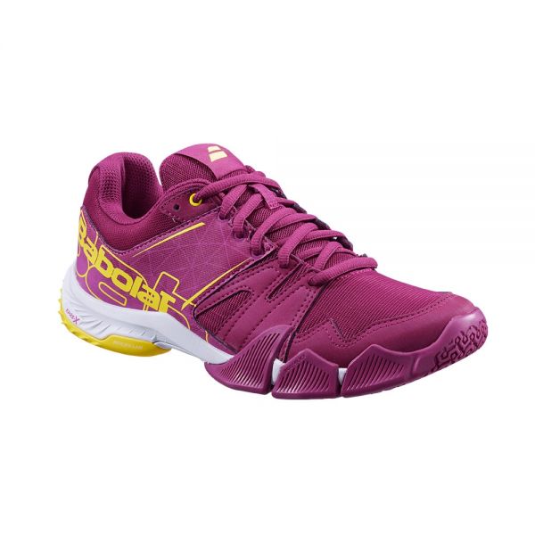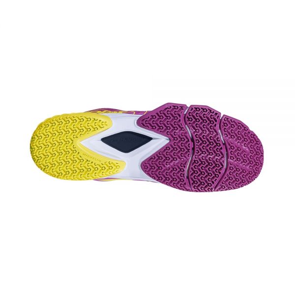 Babolat Pulsa Morado Mujer, las jugadoras de pádel amarán estas zapatillas por muchas razones: ofrecen una gran comodidad; la suela brinda un agarre óptimo, además, están hechas con un diseño lindo y femenino en color morado, con pequeños detalles blancos y de color amarillo flúor. Son unas zapatillas duraderas de gran calidad.