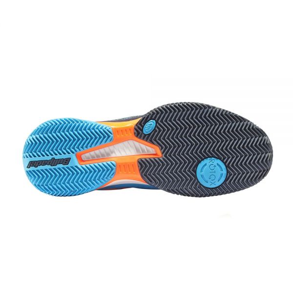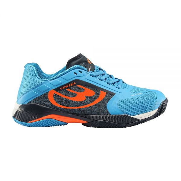 Bullpadel Vertex 20V Azul Naranja - Son unas zapatillas que se caracterizan por estar hechas para dar mucha estabilidad, y también, tracción. Fueron elaboradas para los jugadores de nivel profesional de pádel, te permiten moverte con mucha velocidad en la pista. Su suela proporciona un muy buen agarre.