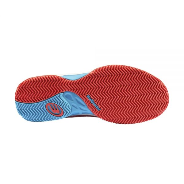 El diseño de estas zapatillas ofrece una silueta ligera con detalles modernos y deportivos. Su color rojo con detalles azules y estampados Bullpadel destacan a simple vista.