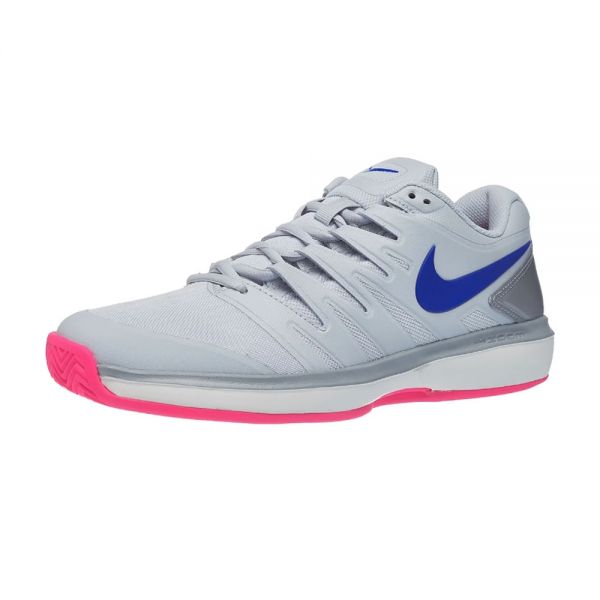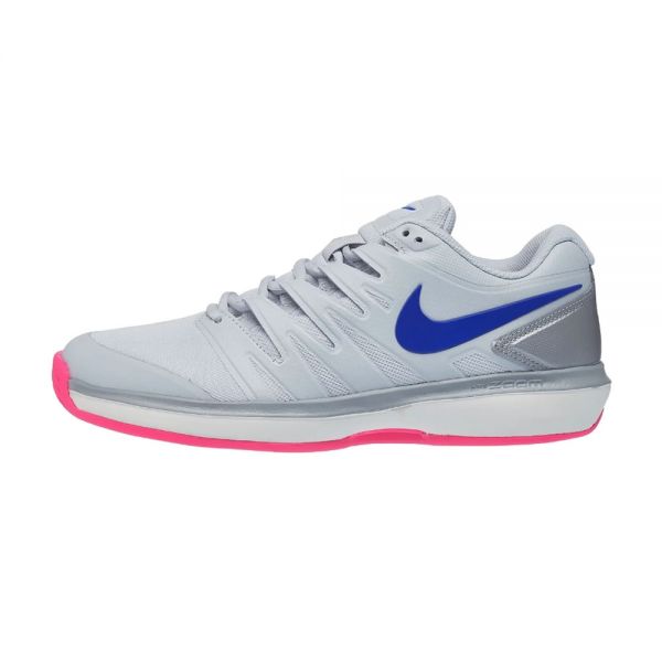 Las zapatillas Nike Air zoom Prestige son un calzado recomendado para usar en superficies de cancha de arcilla, destinado a las mujeres que buscan un calzado ligero y cómodo. Luce un diseño moderno en color gris con rosa que proporciona una estética moderna y elegante. Incorpora una goma en la puntera que brinda mayor durabilidad y resistencia.