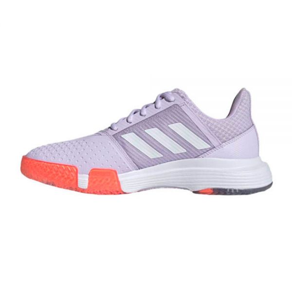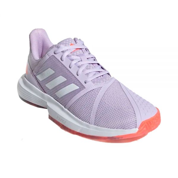 adidas Courtjam Bounce Morado Blanco Mujer - Son perfectas para las mujeres que necesitan llevar unas zapatillas cómodas a la pista de pádel, se diseñaron con la mediasuela Bounce, que llena a las zapatillas de amortiguación y flexibilidad. Te encantará su bonito color morado y su calidad.