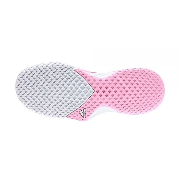 Consigue ya estas zapatillas de pádel ADIDAS Adizero Club para mujer en color rosa y blanco, un calzado que mejora tu rendimiento en la pista y ofrece pisadas cómodas y estables.