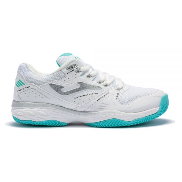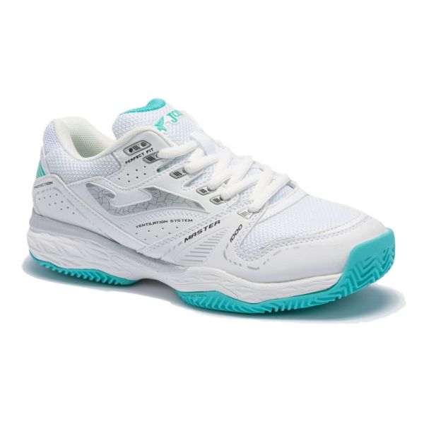 Mejora tu rendimiento en el juego con las nuevas zapatillas Joma Master 1000 en color blanco con azul para las jugadoras profesionales.