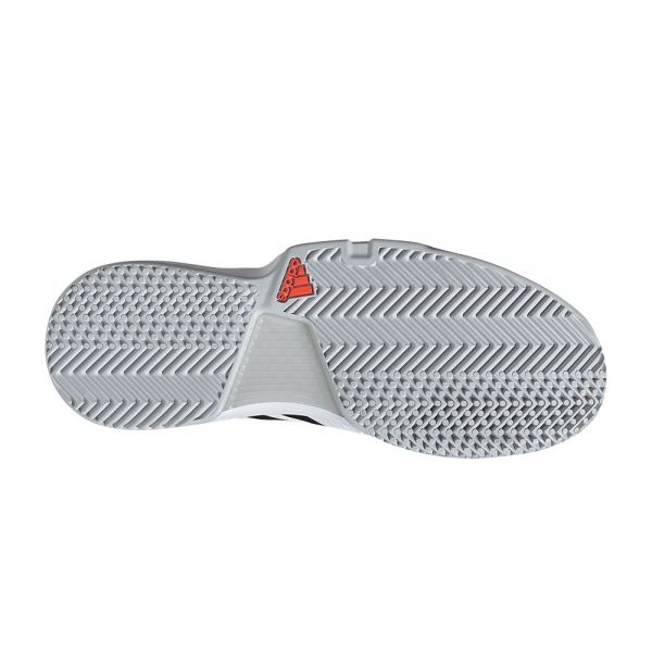 Las zapatillas padel ADIDAS CourtJam Bounce en color blanco y negro, proporcionan una magnífica amortiguación gracias a la media suela, con refuerzos del medio pié que permiten mayor flexibilidad y estabilidad en cada pisada, que junto con la suela de gran calidad Adiwear, ofrecen una excelente tracción y agarre.