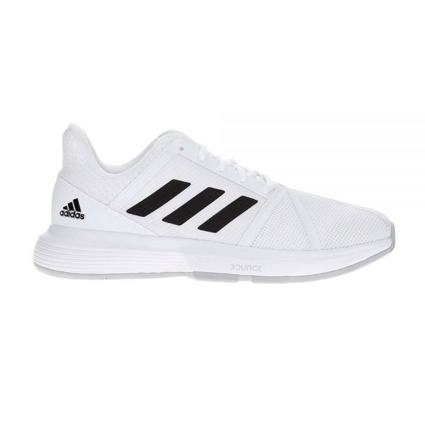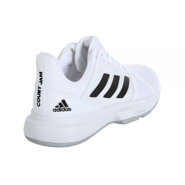 Salta a la pista con las nuevas zapatillas de pádel ADIDAS CourtJam Bounce en color balnco y negro, un calzado hecho para los jugadores de pádel más exigentes que buscan confort, estabilidad y gran amortiguación durante los partidos.